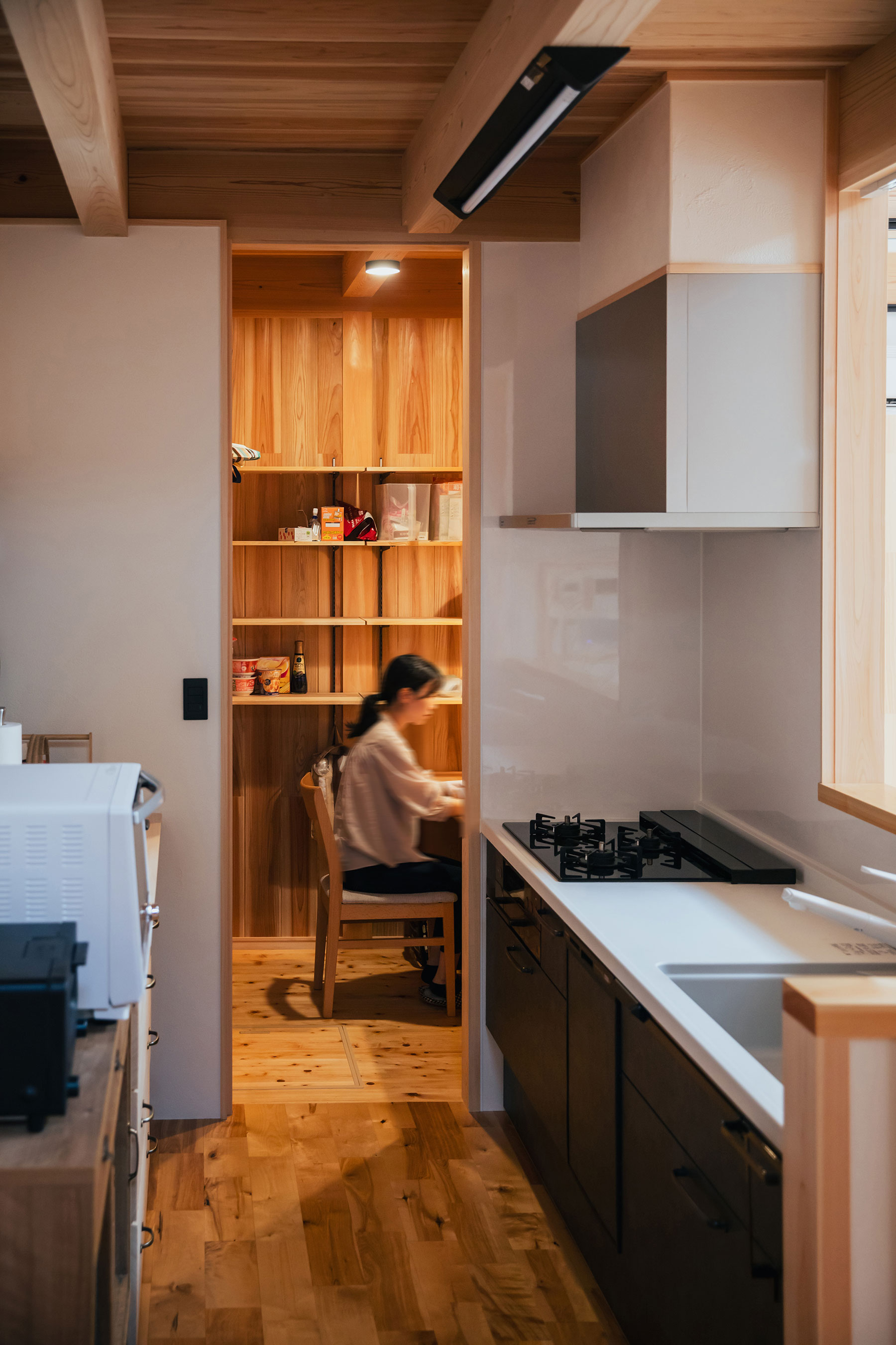 家事も子育てもしやすいよう、収納計画を徹底。2畳のパントリーや4畳のファミリークローク、廊下のストック収納など、適材適所に大容量の収納を設けました。